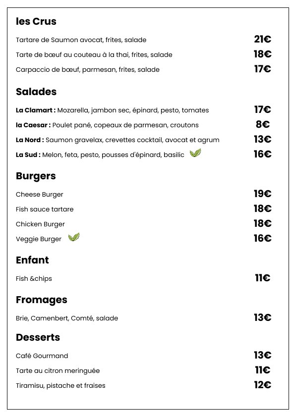 À la brasserie Le Clamart, nous mettons à l’honneur une cuisine gourmande et authentique. Nos plats sont élaborés avec des ingrédients frais et de qualité, soigneusement sélectionnés pour éveiller vos papilles.